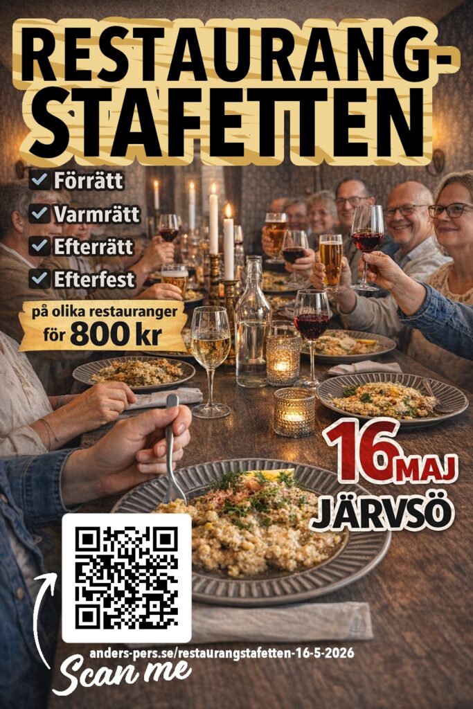 Den 16 maj 2026 är det dags för RESTAURANGSTAFETTEN i Järvsö.